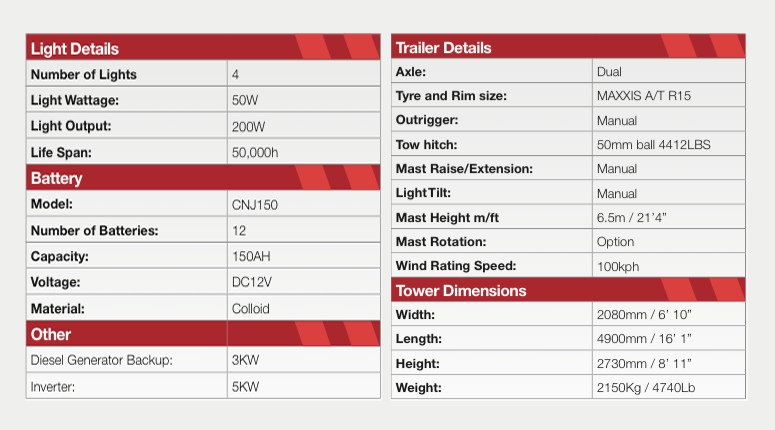 The MT200-A Solar light tower is our dual axle option designed for constant mobilisation in the most harshest mining environments. The MT200A also provides the option of of adding a deisel back up generator to the standard 240v mains inverter/charger. The MT200A can be customised to your requirements/application. Manual hand winch and mast design makes for quick deployment when mobilisation is required.